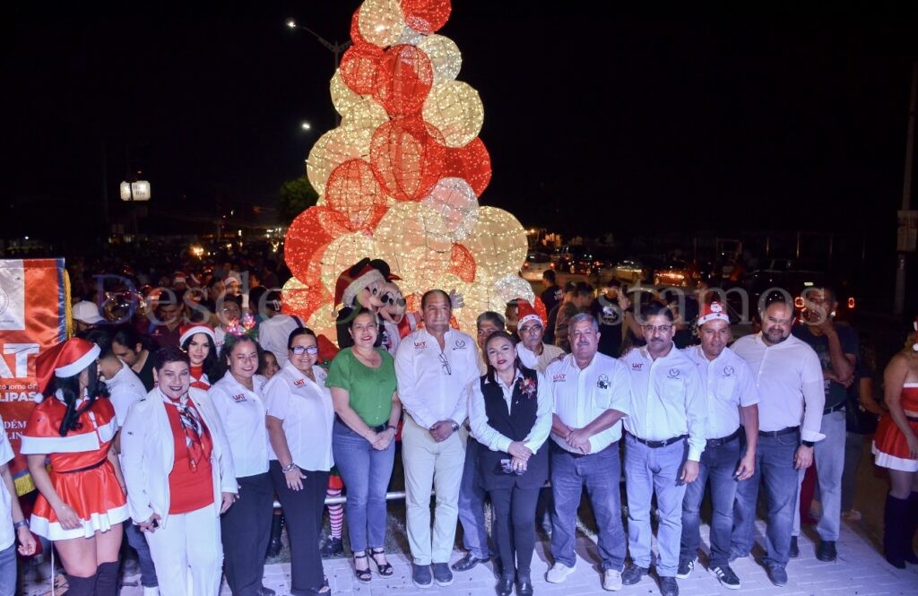 La Universidad Autónoma de Tamaulipas (UAT) celebró en Ciudad Mante el Desfile Navideño y el tradicional encendido del árbol de Navidad en un entusiasta ambiente de la comunidad universitaria y de la población de esta región del estado que se congregaron en torno al evento “Unidos por la Navidad 2024”.
