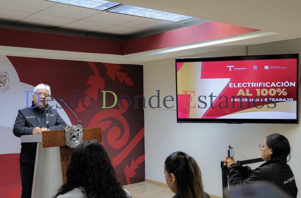 El próximo “Electrificación al 100%” en Tamaulipas arrancara el próximo cuatro de febrero en el municipio de Casas, anuncio el subsecretario de Electricidad  y Energías Renovables, Roberto Manuel Rendón Mares, quien indicó informó que inicialmente 16 comunidades rurales recibirán los apoyos.