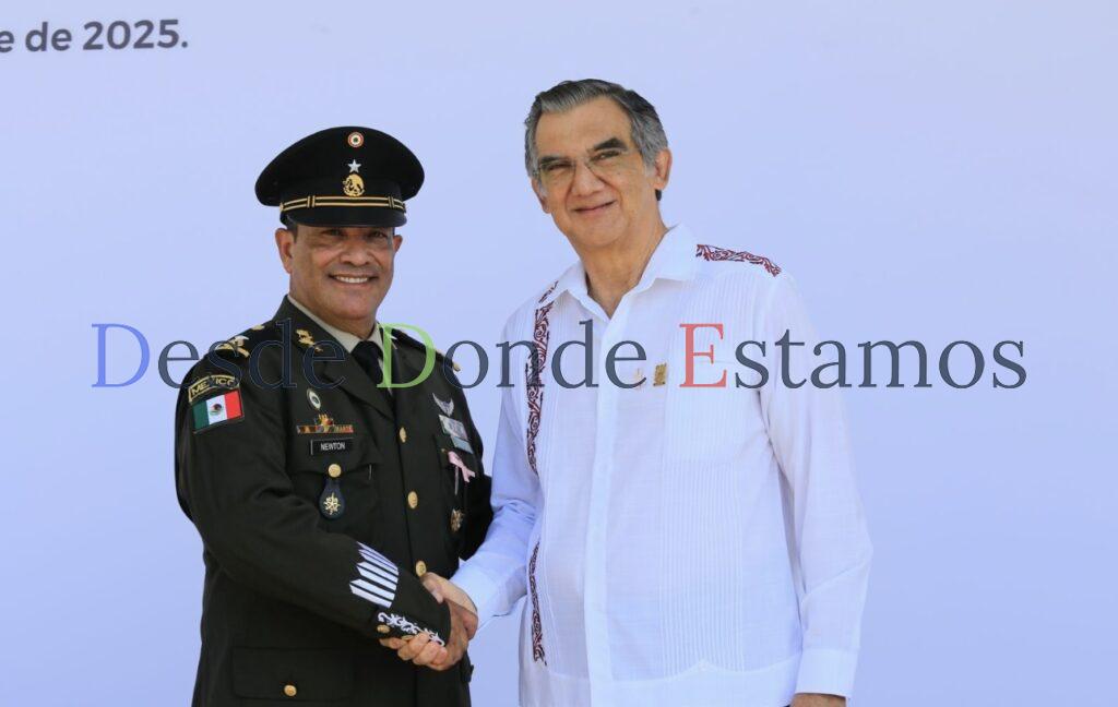 El gobernador Américo Villarreal Anaya asistió como invitado de honor a la toma de posesión al cargo y protesta de bandera del general brigadier de Estado Mayor, Newton Manuel Chávez Baños, como comandante interino de la 48 Zona Militar.